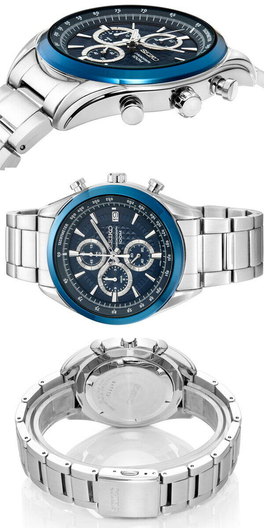 Near Mint Seiko Watch Chronograph Blue Dial Quartz ssb177j1 Used in Japan