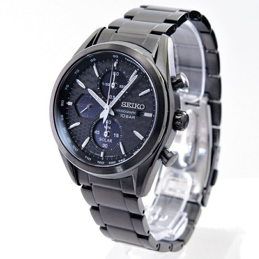 Near Mint Seiko Watch Chronograph Solar Navy Dial SBPJ003 Used in Japan