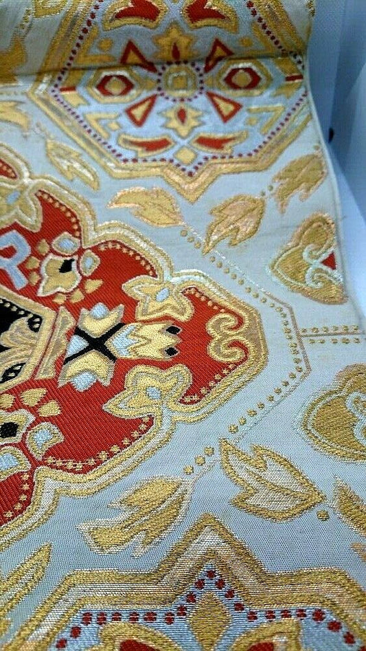 Japanese Vintage obi silk use of gilt and silver thread Lucky patten F/S