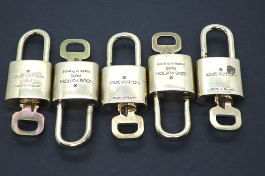 LOUIS VUITTON Brass Gold tone LV Padlock & Key 5 Pieces Set Used in Japan 230413