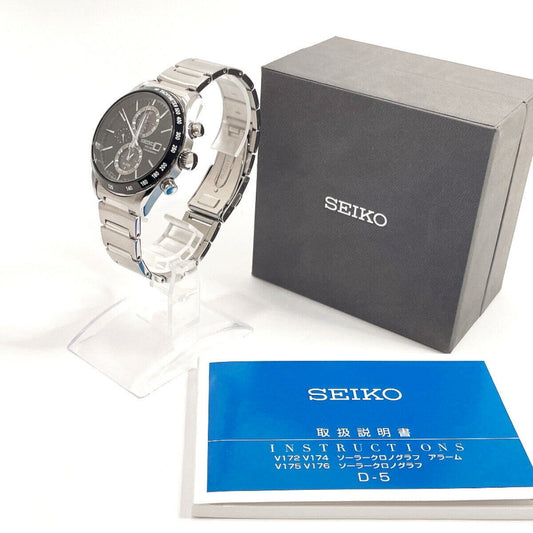 Seiko Watch Chronograph Spirit Solar Analog Black V172-0AP0 Used in Japan