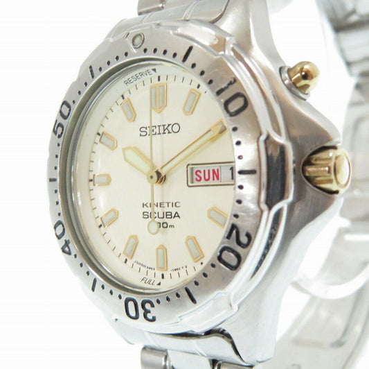 Seiko Scuba Kinetic Divers 5M63-0B30 Auto Quartz Watch Ivory Dial Used in Japan
