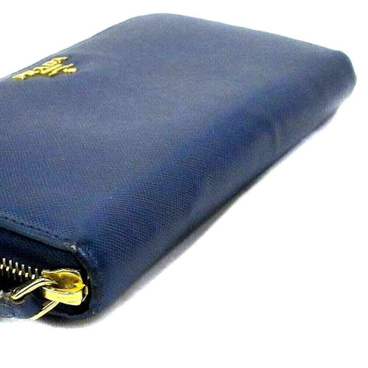 [USED]PRADA Saffiano Round Zipper Long Wallet Navy From Japan F/S