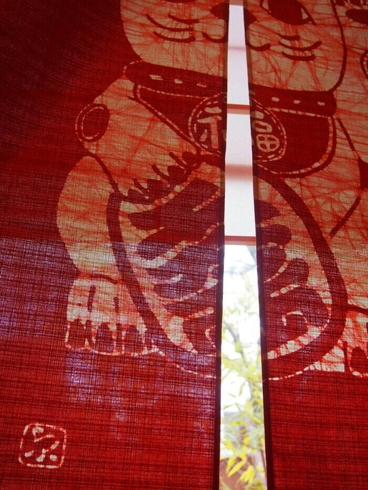 Japan Noren curtain Roketsuzome Lucky Cat which is rare in Kyoto Japan F/S