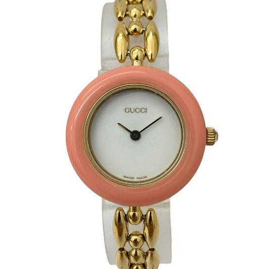 GUCCI 11/12.2 Change Bezel Watch Gold Ladies Quartz Pink Bezel Only Used in JPN